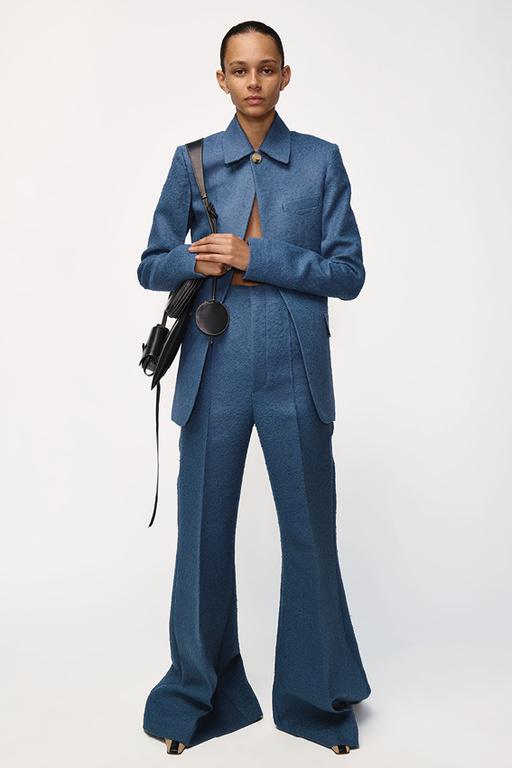 Los trajes van a ser una de las prendas más llamativas de este catálogo de Invierno para mujer, con diseños que varían en el tejido, en el corte del mismo y en los colores. En este modelo, por ejemplo, nos encontramos con un pantalón de cintura alta y con una campana muy pronunciada, a la vez que destaca el pantalón con la raya central.