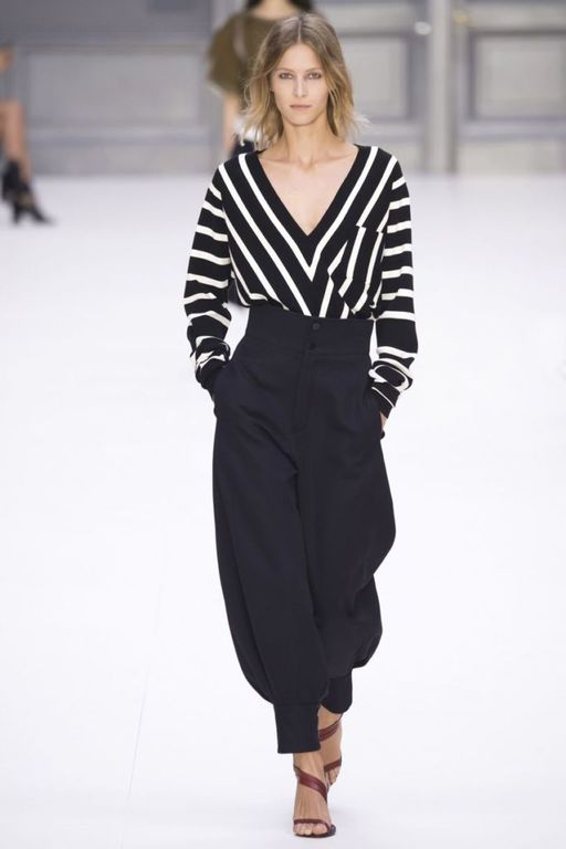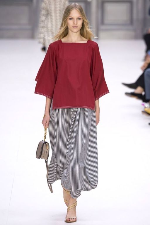 Los estampados son también tendencia. De este modo, comprobamos como Chloe apuesta por las rayas de estilo marinero que se suman además a la tendencia por el «oversize».