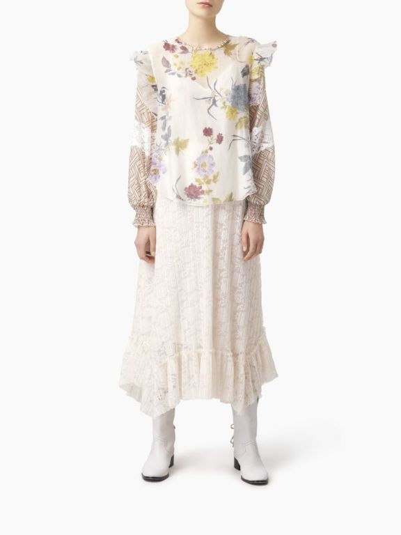 Otra de las prendas que tenemos en Chloé y que destacan en su nuevo catálogo de Invierno son la camisas, que como hemos visto para con los vestidos, se fijan mucho en tendencias de estilo «retro» o «vintage» con ese detalle por el «patchwork» que sin duda nos gusta a todas y que encontramos en modelos de camisas como la que veis a continuación, que además tiene un diseño volantes espectacular.