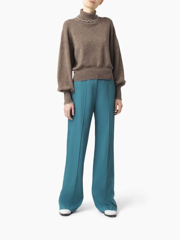 Por otro lado, el estilo «oversize» se deja sentir en muchas de las prendas de Chloé para esta temporada. Esta es una tendencia que vimos en el Catálogo de Pull & Bear para Invierno, pero que Chloé aprovecha para propuestas como el jersey a continuación, que cuenta con unas mangas más amplias de lo normal.