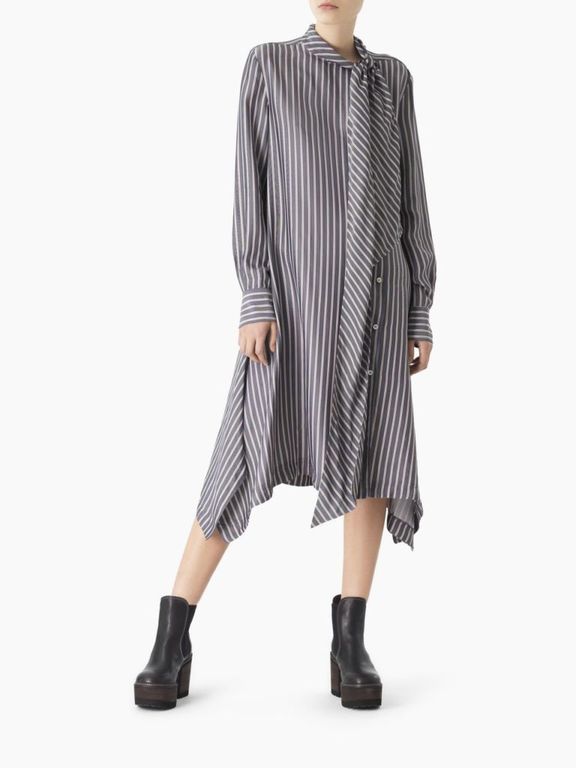 Los vestidos que son de estilo camisero, marcan también tendencia esta temporada. En Chloé puedes encontrar modelos o propuestas diversas, con estampado de rayas y detalle de nudo o de lazo en el cuello. Un modelo ideal para todo tipo de ocasiones.