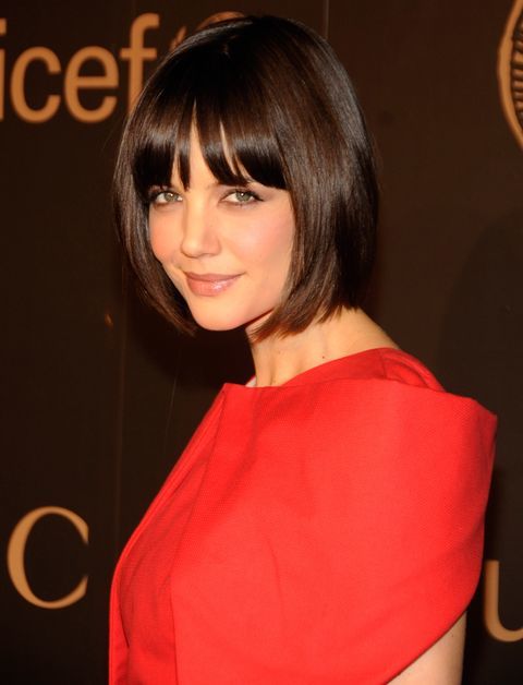 O puedes también imitar el estilo de corte bob que en ocasiones, ha llevado la actriz Katie Holmes. Ella es una de las famosas que mejor ha lucido el corte bob con flequillo recto, pero en los últimos años la hemos visto también llevar este tipo de corte con un flequillo de estilo cortinilla ligeramente abierto tal y como te mostramos a continuación: