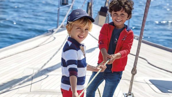 En la sección ropa para niños de 2 a 9 años, hemos encontrado muchas ofertas de ropa para eventos y celebraciones especiales como bautizos, bodas o comuniones, tanto para niño como para niña. También puedes encontrar prendas como vaqueros y polos de manga corta para niños y pantalones cortos y blusas para niñas con rebajas de hasta del 40%, pero de forma especial podemos encontrar los conjuntos de inspiración náutica como vemos en la imagen a continuación, con polo de rayas o chaqueta de sudadera.