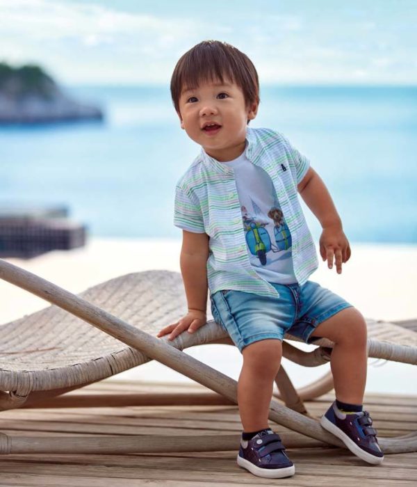 De este modo, los polos que Mayoral nos presenta en esta colección primavera verano y que podremos conseguir a un precio muy asequible en su campaña de rebajas Mayoral, vienen con estampado de rayas, en manga corta y que se pueden combinar con bermudas, mientras que por otro lado tenemos además las camisas que recrean el estilo de la moda de hombre, y que se presentan también con estampados.
