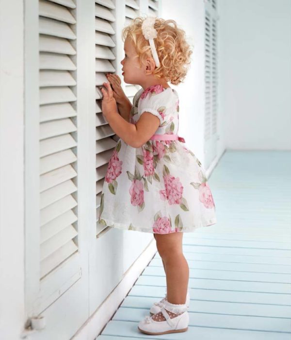 Para las niñas de forma especial, tenemos que mencionar además los que son vestidos estampados, ya que marcan ahora tendencia. En Mayoral los tienes muy variados, como el modelo que podéis ver a continuación, con bonito estampado floral.