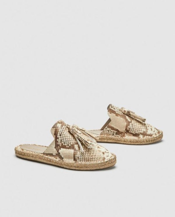 Por otro lado, Zara siempre consigue sorprendernos y de este modo, nos propone que entre las tendencias calzado apostemos por espardeñas pero muy a su estilo. De este modo, encontramos modelos como el que veis arriba, unas espardeñas planas, cerradas por delante y abiertas por detrás y con estampado de animal print.