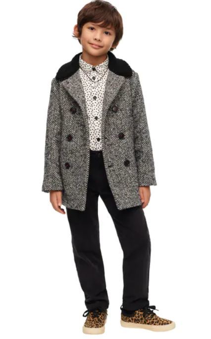 Pero si lo que queréis es que vuestro hijo sea el mas chulo de todos estas Navidades, mirad que outfit os traemos. La elegancia de los anteriores con un pantalon de traje y una camisa, pero con unas zapatillas de estampado. Un look brutal para nuestros hijos.