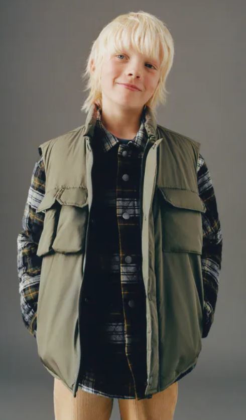 Si prefieres un look mas informal, seguro que con una camisa como esta tu hijo triunfará en Navidad. Además con un chaleco así no solo completará su outfit, sino que no pasará nada de frío.