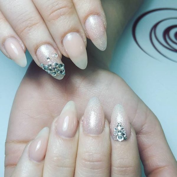 En la galería de fotos que te dejamos a continuación, puedes ver otras propuestas de uñas almendradas con piedras y brillantes:
