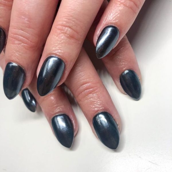 También entre los colores tendencia para nuestras uñas almendradas tenemos que hablaros del color gris así como los colores en gris oscuro, acercándose al negro como este diseño que veis a continuación. Un tono que ya fue tendencia hace años y que ha vuelto con mucha fuerza.
