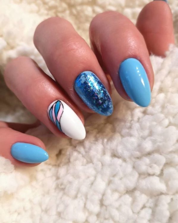 Por otro lado, el azul es un color que se presta a que podamos combinarlo con otros. En el caso de las uñas azules, podéis elegir una amplia variedad de combinaciones con otros tonos como es el caso del blanco, otro tono de uñas que también es tendencia (podéis ver muchas propuestas en este post dedicado a las uñas blancas).