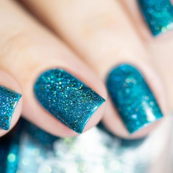 Además de los diseños de uñas azules que hemos visto con la presencia de piedras brillantes, tenemos que sumarle también la tendencia de los esmaltes que tienen un diseño con glitter o purpurina, y que son también una buena propuesta para este color de uñas. De este modo podemos elegir diseños como las uñas a continuación, en azul, y con una capa superior con purpurina que le aporta un estilo «3D» que nos encanta.