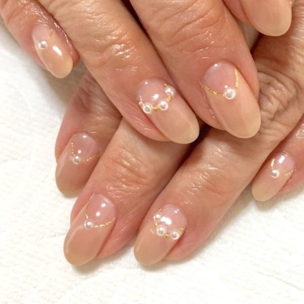 Otra de las opciones que tenemos para las uñas beige y de este modo, lograr que brillen mucho más que con un diseño glitter es añadir algunas piedras o brillantes por pequeñas que sean. De este modo, podemos decantarnos por un diseño como el que veis a continuación en el que unas bonitas uñas beige cuentan con detalle de una piedra pequeña y en dorado.