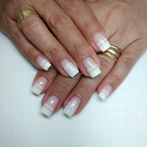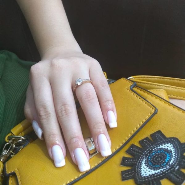 También podéis elegir vuestras uñas blancas combinadas con un tono que sea rosado, o un tono nude o uno que sea transparente como vemos en este otro diseño, de modo que podamos crear un ligero degradado que por otro lado, es tendencia.