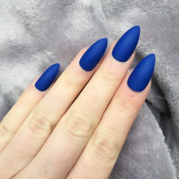 O también podemos apostar por unas uñas de porcelana que tengan un color de moda como el azul, como vemos en este otro diseño.