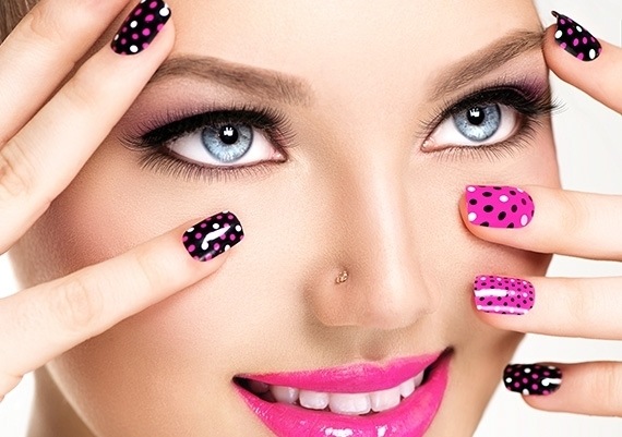 Las uñas de porcelana se pueden llevar también en el día a día, de modo que para ellas puedes elegir entonces un diseño más informal como este que os mostramos, con lunares, ya que este tipo de dibujo son tendencias entre las uñas de porcelana.