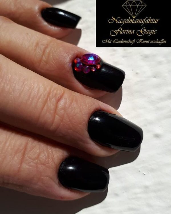 También podemos apostar por llevar unas uñas de color negro, con unas piedras que sean más grandes. En este sentido, puede que tan solo sea necesario, apostar por colocar una sola piedra en una de las uñas y el resto dejarlas pintadas solo en negro.