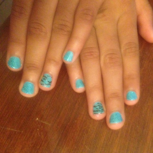 Por otro lado, podemos decantarnos también por algunos de los colores de moda para las uñas y aprovechar así para aplicarlos sobre las uñas de las niñas. Uno de esos colores será sin duda alguna, el color azul que marca ahora tendencia y que os puede servir además para un bonito diseño imitando el «animal print» como vemos en esta otra propuesta.